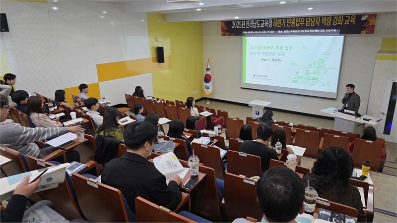 전라남도교육청(교육감 김대중)은 31일 보성에서 ‘2025 하반기 민원 업무담당자 역량강화 교육’을 열고, 민원 현장에서의 공감 행정과 신뢰받는 서비스 구현 방안을 모색했다.