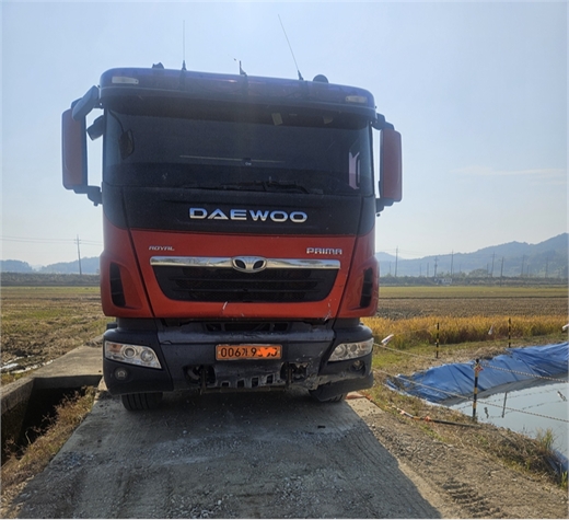 지난 7일 토석채취장 해당 난폭운전으로 사고낸 덤프트럭 사진출처-뉴팩트라인