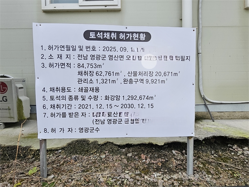 「국토의 계획 및 이용에 관한 법률」 제56조는 개발행위 허가 후 지자체가 지속적인 현장 점검과 관리 의무를 져야 한다고 규정하고 있지만, 영광군은 비산먼지 방지, 살수차 운영, 운행시간 제한 등 최소한의 안전조치조차 마련하지 않은 상태다.