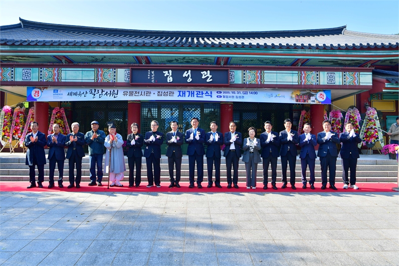 장성군이 31일 필암서원 집성관에서 유물전시관·집성관 재개관식을 가졌다. 수선 공사(리모델링)를 거쳐 2년여 만에 새롭게 문을 연 유물전시관은 ‘미디어 파사드’, ‘터치 스크린’ 등을 이용해 필암서원의 역사를 쉽고 재미있게 배우는 ‘디지털 전시 공간’으로 거듭났다. 집성관에선 공연, 독서, 체험 등 다양한 문화 활동에