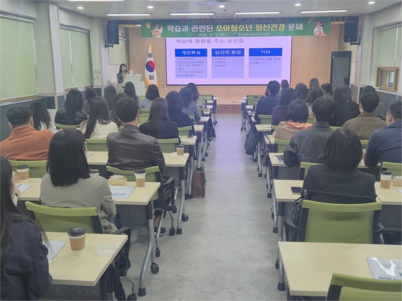 전라남도담양교육지원청(교육장 김진홍)은 30일 목요일 오후 2시부터 관내 초·중 교감 및 학습지원담당교원을 대상으로 '천천히 배우고 깊이있게 가르치기 위한 학습과 정신건강'을 주제로 한 기초학력 역량강화 연수를 실시했다. 이번 연수는 전남대학교병원 정신건강의학과 이주연 교수를 모시고 진행하였으며, 학습 과정에 영향을