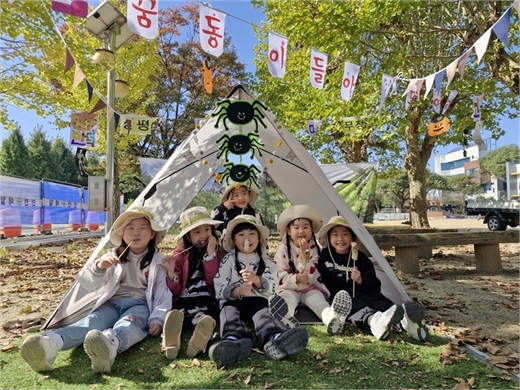 고서초등학교병설유치원(원장 최경석)은 작은유치원(고서,창평,만덕,무정) 공동교육과정으로 가을풍경을 즐기면서 수확 쌀을 이용한 오감놀이활동 주제로 10월31일(금) ‘다 함께 놀이데이’를 운영하였다. 대나무반 친구들은 연합운동회 때 사용한 현수막을 리싸이클하여 캠핑놀이의 가렌드로 재탄생하는 생태전환교육도 실천하였다. 또한