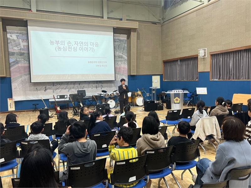또한 이날 행사에서는 기산초 14회 졸업생 곽선미 농협중앙회 함평군지부 지부장이 방문해 ‘선배와의 대화’ 시간을 가졌다. 곽 지부장은 “농업은 생명을 살리는 일”이라며 농업의 소중함을 강조했고, 학생들에게 “밥 한 톨, 반찬 하나도 소중히 여기고, 꿈을 향해 도전하며 친구들과 사이좋게 지내길 바란다”라는 따뜻한 덕담을 전했다. 학생들은 선배의 진솔한 이야기를 들으며 지역 사회 속에서 기산초 출신으로 살아가는 자부심을 느꼈다. ‘나도 누군가의 멋진 선배가 되고 싶다’는 다짐을 전하는 학생도 있었다.