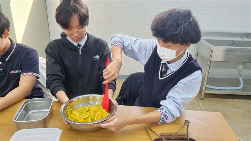 더불어 학생들은 황금향을 활용한 풋귤청 만들기 실습을 통해 농산물 가공과 유통, 체험이 결합된 부가가치 창출의 과정을 직접 경험했다. 이를 통해 단순 생산을 넘어 미래형 농업의 융합적 방향성을 이해하는 뜻깊은 계기가 되었다.